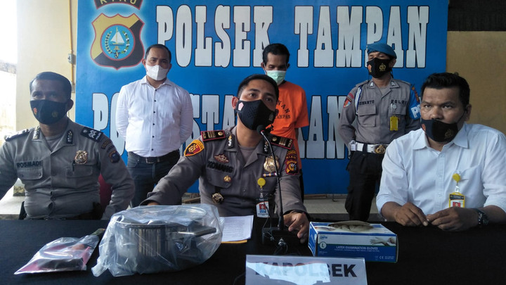 Setelah aksi penganiayaan berat tersebut, pelaku dibekuk Polsek Tampan serta barang bukti satu unit panci dan satu buah martil/palu.