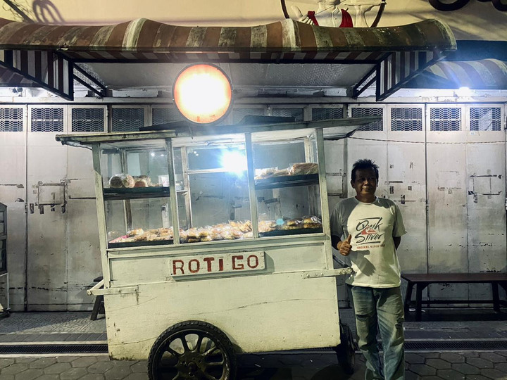 Banyumas - Ketika sebuah toko roti di ruas jalan Purwokerto mulai tutup dan lampu etalase dipadamkan, aktivitas di tempat itu belum sepenuhnya berhenti. Tak lama setelah jam operasional berakhir, seorang pria tua mulai mendorong gerobak kecil ke depan toko dengan semangat yang tak ikut pulang bersama siang dan di sanalah malamnya bermula.