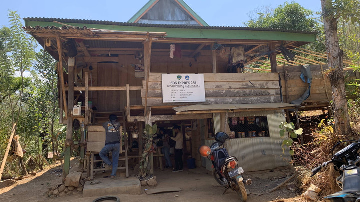 Di kala saya sedang menikmati alam Dusun Bara di depan rumah Daeng Becce tempat saya menginap, saya bertemu dengan seorang anak perempuan bernama Naila yang tengah mengantri untuk mandi kemudian bersiap menuju ke sekolah. Naila kemudian menyapa saya dan menanyakan kehadiranku di sekolah kolong nanti. Sekolah Kolong sendiri merupakan istilah dari kelas jauh dari SD Inpres 238 Bonto Parang. Alasan kenapa kemudian disebut sebagai sekolah kolong karena letaknya berada dibawah kolong rumah salah satu warga yakni Ibu Sabaria. Karena penasaran sekaligus tertarik dengan pertanyaan yang berisi ajakan tersebut, saya kemudian bersiap untuk menuju ke sekolah kolong yang jaraknya dekat dari tempat tinggal saya. Sesampainya saya di sekolah kolong tersebut, saya bertemu kembali dengan Naila yang merupakan murid kelas 1 SD bersama dengan teman-temannya. Tidak hanya murid dari kelas 1 saja yang saya temui di ruangan tersebut, saya juga bertemu dengan anak-anak lainnya dari kelas yang berbeda di ruangan yang sama.