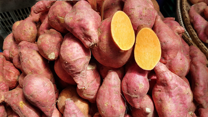 Ubi ungu mengandung karbohidrat kompleks, serat makanan, vitamin B3, B6, vitamin C, asam folat, kalium, magnesium. Selain mampu mengurangi hipertensi, ubi ungu dapat mencegah kanker dan mengurangi peradangan. Konsumsi dengan cara dikukus atau direbus untuk mempertahankan serat dan nutrisi. Mengolahnya menjadi kue dapat mengurangi 60 persen nutrisinya.