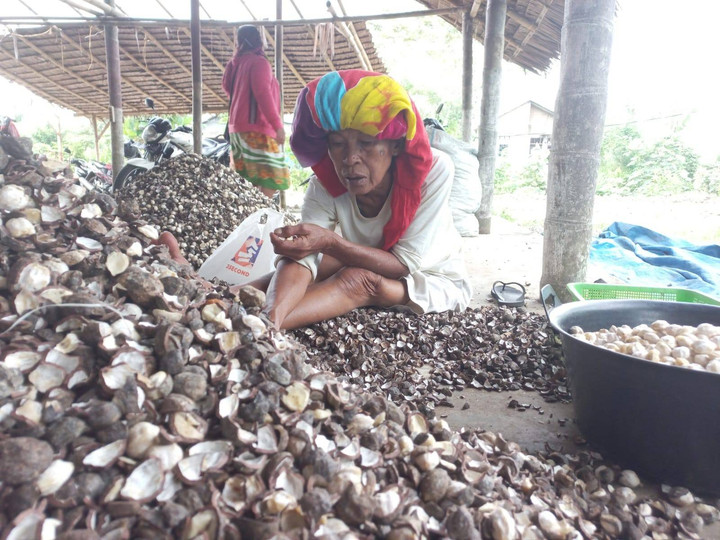 Tak ada tanah untuk bertani kini sehari-hari Sumiati menjadi pemilah kemiri. Ia memilah kemiri ke dalam dua bagian yakni kemiri yang bagus dan kemiri yang belum terlepas dari kulitnya. Kemiri yang tak terlepas dari kulitnya akan dikembalikan untuk dimasukkan ke mesin penggiling kulit. Kemiri yang bagus dari hasil pemilahan akan ditimbang dan dihargai Rp 700/kg. Dalam 1 minggu Suamiati hanya mendapat penghasilan sebesar Rp. 130.000.