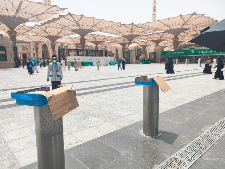 Saat itu saya melintas di gerbang 338 Masjid Nabawi. Gerbang yang terbilang sangat padat ini sering berkerumun banyak jamaah. Saya melihat sejumlah orang membawa beberapa kardus besar berisi kurma untuk dibagikan ke semua jamaah yang ada di tempat tersebut.