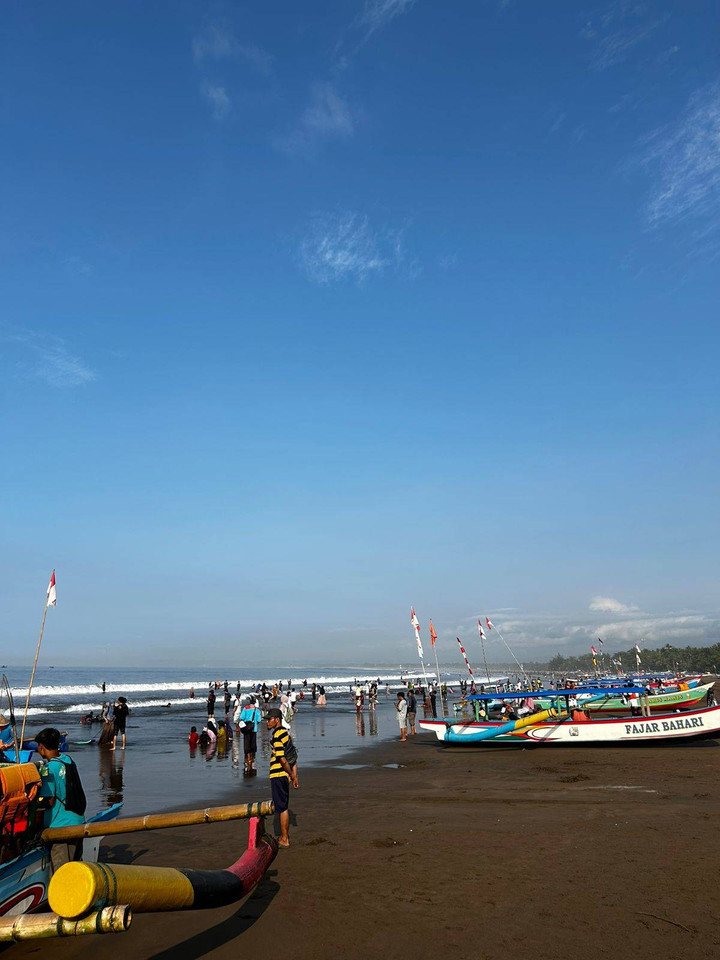 Setelah COVID mereda, banyak orang yang berjualan kembali di sekitar pantai pangandaran, banyak orang yang berenang bahkan menaiki kapal yang disewakan penjual.