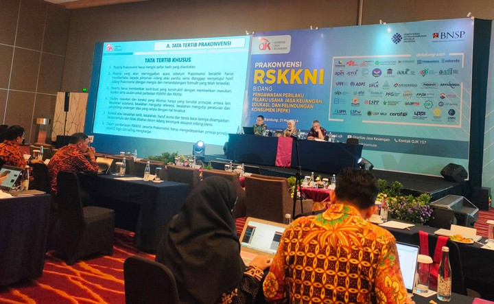 Sesuai mandat UU No. 4/2023 tentang PPSK dan sebagai upaya dalam mengembangkan Sumber Daya Manusia (SDM) sektor jasa keuangan yang profesional, berintegritas, dan berdaya saing global, OJK Institute menggelar "Prakonvensi RSKKNI bidang Pengawasan Perilaku Pelaku Usaha Jasa Keuangan, Edukasi, dan Pelindungan Konsumen (PEPK)" di Bandung (21/5/2024). Dibuka oleh Imansyah, Kepala OJK Provinsi Jawa Barat dan Agus Sugiatro, Kepala OJK Institute, acara ini dihadiri 150 orang pelaku jasa keuangan, tim perumus, dan tim verifikasi RSKKNI PEPK. Turut hadir di acara ini, NS Aji Martono (Komisioner BNSP), Widjanarko (Koordinator Pengembangan SKKNI Kementerian Ketenagakerjaan), dan Ni Nyoman Puspani (Direktur Pengembangan Sektor Jasa Keuangan OJK).