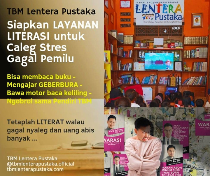Layanan Literasi Caleg Stres Gagal Pemilu Dibuka Taman Bacaan