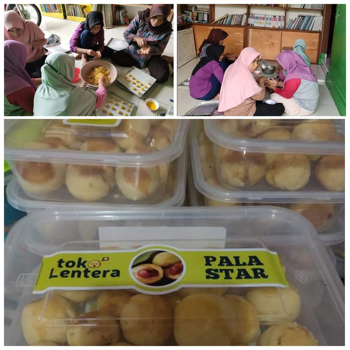Mereka pun terus "bergerak" untuk membuat snack/kue berbahan buah pala yang memang buah khas Bogor yang diberi nama "PALASTAR" (saudaranya NASTAR). Selain berkhasiat, PALASTAR ini bolehlah dibilang produk UMKM karya ibu-ibu buta aksara di GEBERBURA. Sebagai tindak lanjut gerakan literasi, mereka mulai menekuni usaha kecil-kecilan melalui bendera "TOKO LENTERA" yang rencananya dipasarkan secara online dan sesuai pesanan. Hari ini pun mereka menuntaskan pesanan 10 boks dari konsumen di Jakarta.
