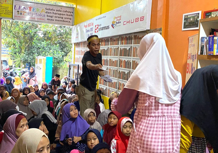 Bertepatan dengan khataman ke-3 anak-anak pembaca aktif setiap Sabtu di kaki Gunung Salak Bogor, Pendiri TBM Lentera Pustaka membagikan sedekah “uang ketupat” kepada anak-anak dari 87 keluarga (30/3/2024). Selain untuk memotivasi anak-anak agar rajin membaca ke taman bacaan, sedekah ini tiap tahun dilakukan pendiri TBM Lentera Pustaka sebagai ungkapan rasa Syukur atas anugerah dan rezeki yang diterimanya sebagai konsultan dana pensiun dan direktur eksekutif Asosiasi DPLK di kesehariannya.