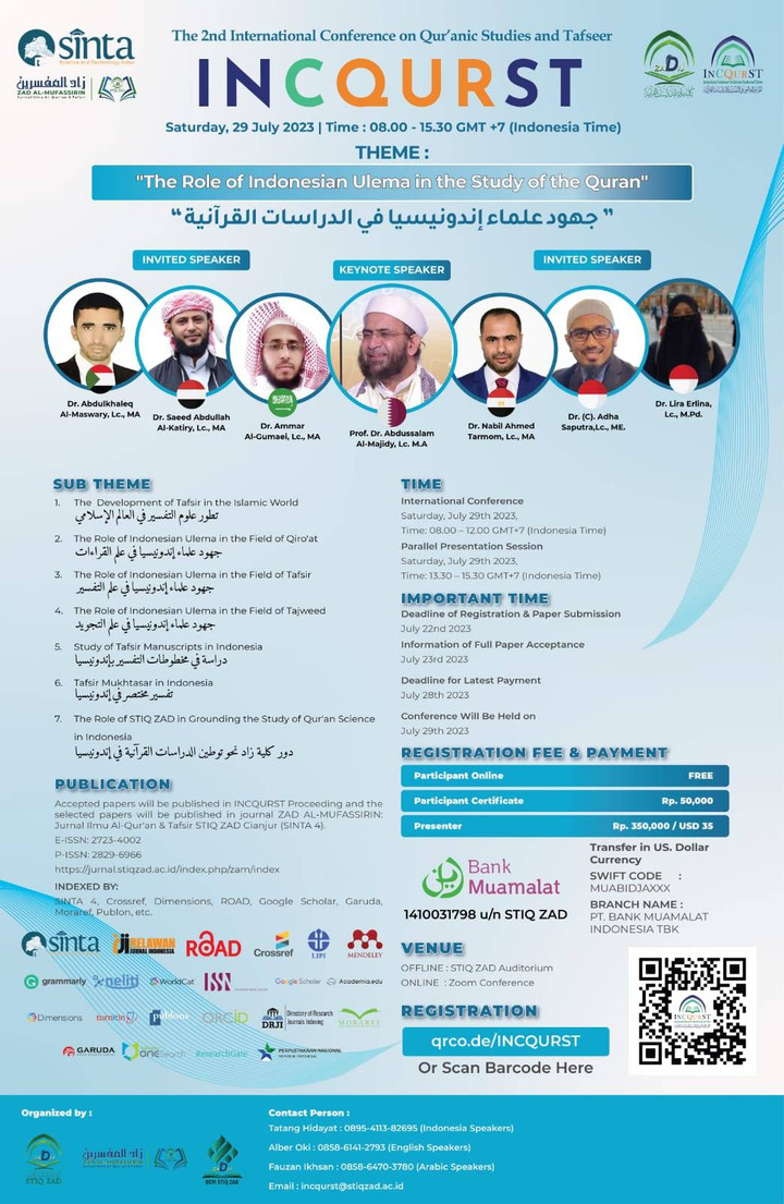 ZAD Media, Cianjur, 27/7/2023 - Sekolah Tinggi Ilmu Al-Qurâan (STIQ) ZAD Cianjur akan menggelar Seminar Internasional bertajuk "The Role of Indonesian Ulema in the Study of the Quran". Yang akan dilaksanakan 29 Juli 2023 di Auditorium STIQ ZAD, Cianjur, Jawa Barat.