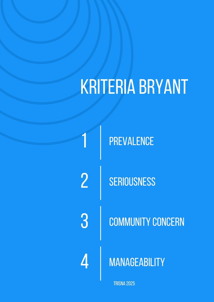 Tantangan dalam penerapan metode Bryant ini adalah subjektivitas dalam pemberian skor, terutama untuk aspek seperti βcommunity concernβ. Sehingga membutuhkan data yang valid dan terkini untuk menghasilkan hasil yang akurat.