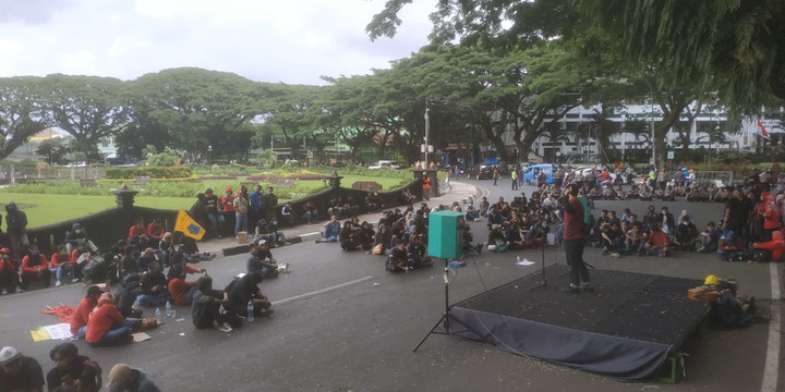 MALANG - Aksi unjuk rasa menolak UU Cipta Kerja (Omnibus Law) di Kota Malang terus berlanjut. Kali ini, Aliansi Malang Melawan yang terdiri dari kalangan buruh dan mahasiswa kembali turun jalan, pada Selasa (10/11/2020).