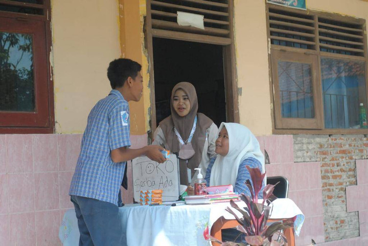 “Kami bersama tim juga memberikan pengertian untuk peduli lingkungan. Dimulai dari hal paling dekat yaitu membersihkan lingkungan kelas dan sekolah. Lalu ada juga kegiatan belajar jual beli, jadi kami membuat booth toko serba ada kecil-kecilan dari meja dan kursi. Terus setiap seminggu sekali kami mengajak siswa-siswi untuk senam pagi.” jelasnya.