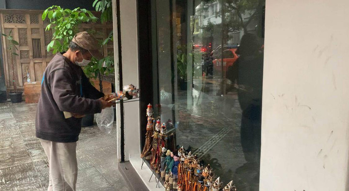 “Bagaimanapun cobaan ini, kita harus pertahankan, kita sehat, jangan sampai punah...” semangat yang lirih terdengar dari seorang pria paruh baya berusia 63 tahun, Ramdan, sembari terduduk di depan ruko ditemani oleh deretan wayang golek buatannya.