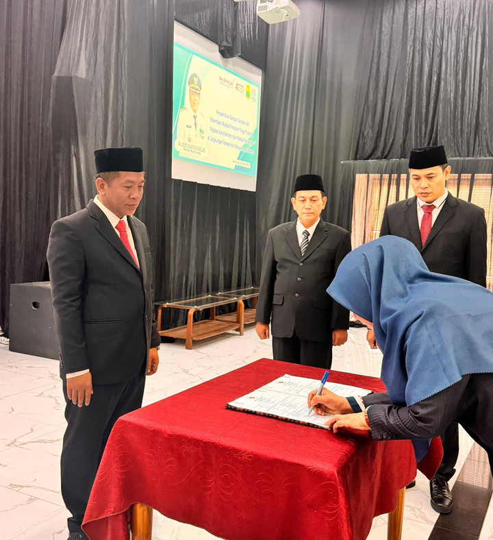 Pengambilan sumpah jabatan pimpinan tinggi pratama, jabatan administrator dan jabatan pengawas di lingkungan Pemkab Karawang digelar di Aula Husni Hamid Pemda Karawang pada Jumat, 1 Maret 2024.