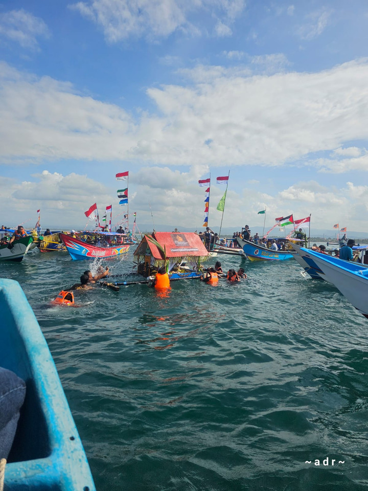 Hal serupa berlaku pada kepala kambing yang dilepaskan ke laut. Bagian yang dilarung hanyalah kepalanya, sementara sebagian besar dagingnya dikonsumsi oleh masyarakat. “Selain itu, nasi dan kepala kambing tersebut tidak benar-benar sia-sia, karena akan dimakan oleh makhluk hidup di dalamnya,” lanjutnya.