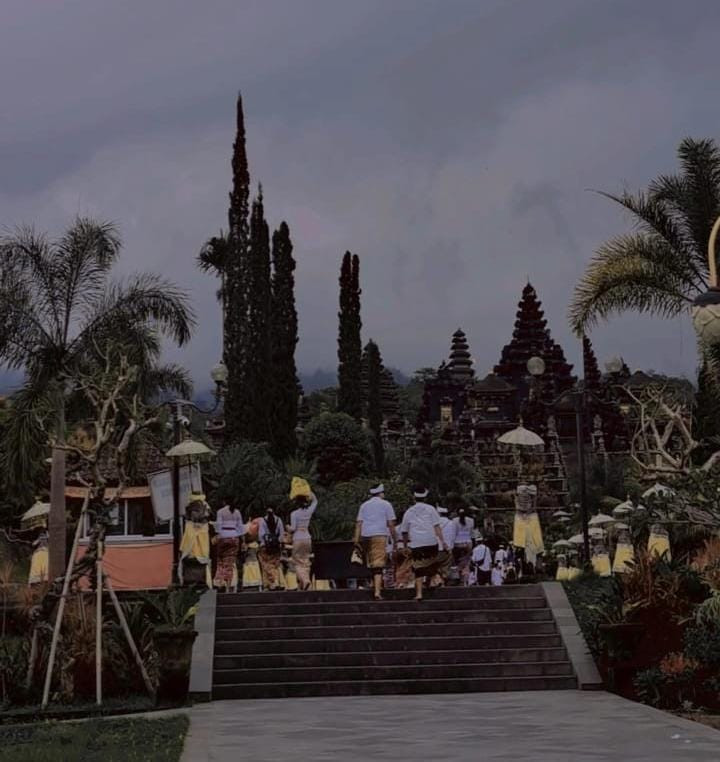 Saat itupun sesuatu terlintas dibenakku suatu peristiwa yang serupa Dimana seorang ibu ibu yang menjual nasi kuning memulai bas abasi yang sama dengan menanyakan asal saya dari mana dan alasan mengapa saya lebih milih menempuh Pendidikan di luar kampung halaman. Tentunya banyak mahsiswa lain yang menjalani peristiwa yang serupa dimana mahasiswa itu merantau keluar dari kampung halaman demi Pendidikan ataupun pekerjaan. Ibu itu pun memberikan pertanyaan lanjutan dengan bertanya βDi Bali agama islamnya banyak tidak ? kalau yang agama islam disana boleh sholat jumat waktu nyepi?β Pertanyaan itu cukup mengejutkan sekaligus menyadarkan saya akan adanya rasa ingin tahu masyarakat luar Bali terhadap budaya dan toleransi beragama di daerah saya. Serta mengenai bagaimana pandangan penduduk atau masyrakat di Jawa mengenai budaya , kebiasaan ataupun kalangan mayoritas dan minoritas di Bali.