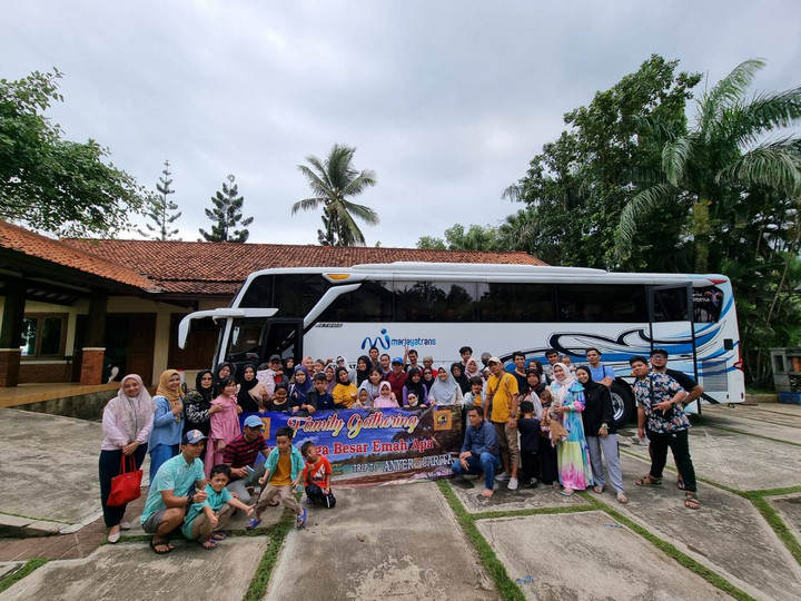Masuk tol Jagorawi kami memposisikan duduk dengan nyaman dan saling menyapa kabar sambil bercerita satu sama lain. Bus sudah terisi penuh oleh anggota keluarga dan kami sangat antusias dengan perjalanan ini karena pertama kalinya keluarga besar Emah Apa berkumpul dan piknik bersama ke luar kota.