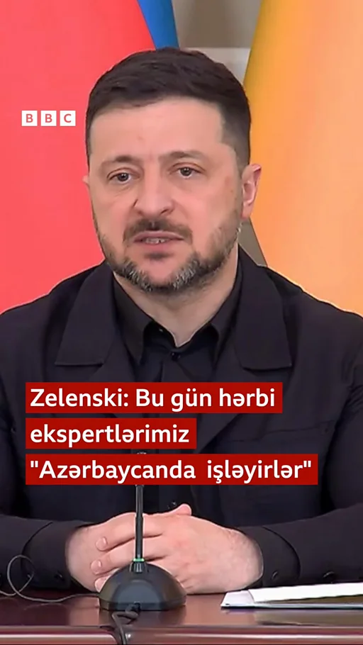Videonun alt yazısı, Zelenski: Bu gün hərbi ekspertlərimiz "Azərbaycanda işləyirlər"