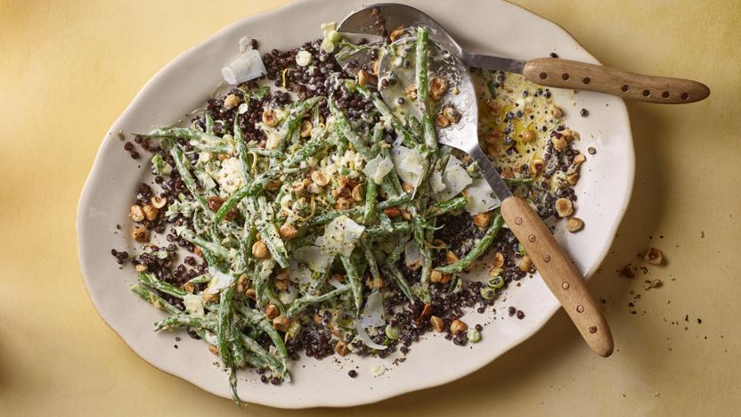 Mustardy beans and hazelnuts