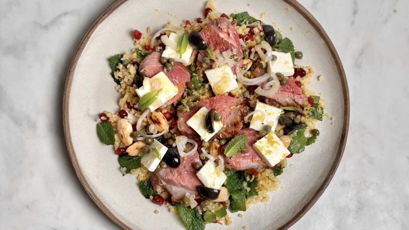 Warm feta and roast lamb salad