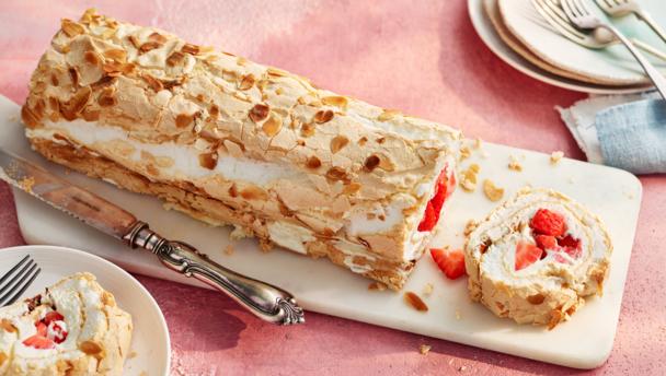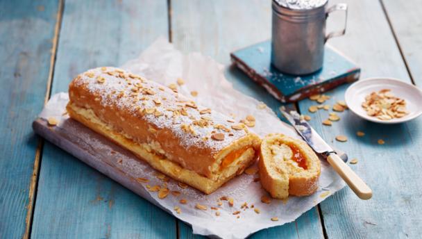 To make a Swiss roll you need to bake a large, flat sheet of sponge cake. Place it, still warm, on a sheet of greaseproof paper or a tea towel.
