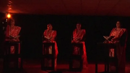 (वरिष्ठ रंगकर्मी तनवीर अख्तर की रहनुमाई में रुक़ैया के ख्यालातों को हाल ही में पटना में मंच पर निवेदिता, चंद्रकांता, नूतन, मोना और नासिरुद्दीन ने पेश किया.)