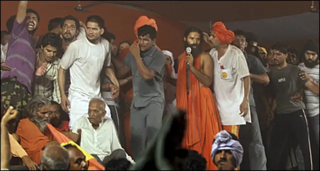 शनिवार रात भारतीय समयानुसार क़रीब डेढ़ बजे रामलीला मैदान में तब अफ़रा-तफ़री मच गई जब स्वामी रामदेव ने घोषणा की कि पुलिस उन्हें गिरफ़्तार करने आई है. उन्होंने इस पर कड़ी आपत्ति जताई.