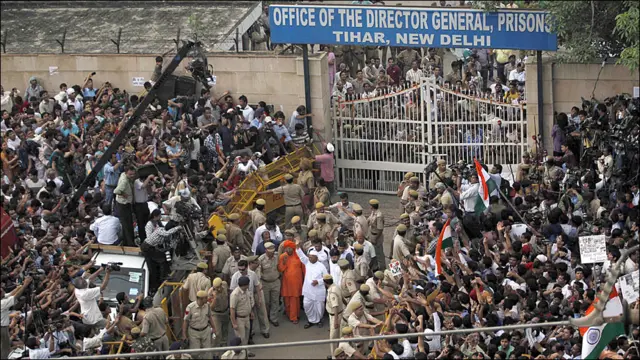 तिहाड़ से रामलीला मैदान पहुँचे अन्ना