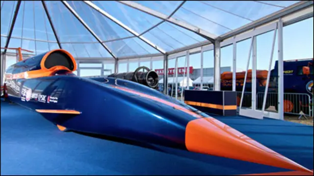 नीले और नारंगी रंग की ब्लडहाउंड सुपरसॉनिक कार का मॉडल तैयार करने वाले इंजीनियरों का मानना है कि इसमें लगे फ़ॉल्कन हाइब्रिड रॉकेट और यूरोफ़ाइटर टाइफून जेट इंजिन इसकी रफ़्तार 1000 मील यानि 1610 किलोमीटर प्रतिघंटे से ज्यादा कर देंगे.