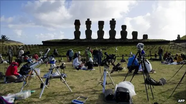 Gerhana matahari total melintasi Pasifik Selatan disaksikan ribuan wisatawan dan ilmuwan di Pulau Easter, Cile.