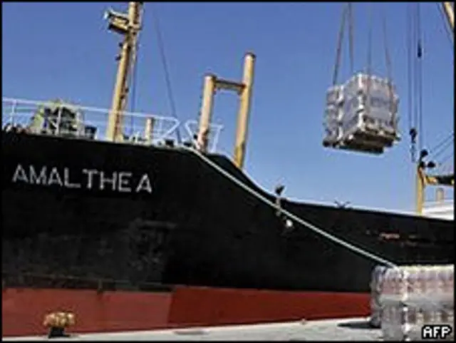 Kapal bantuan tersebut dihadang kapal angkatan laut Israel di lepas pantai Gaza dan dipaksa untuk berlayar ke selatan.