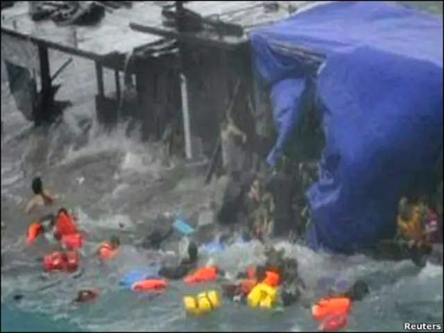 Para penumpang perahu kayu rapuh itu diyakini pencari suaka yang menuju Australia melalui Indonesia.