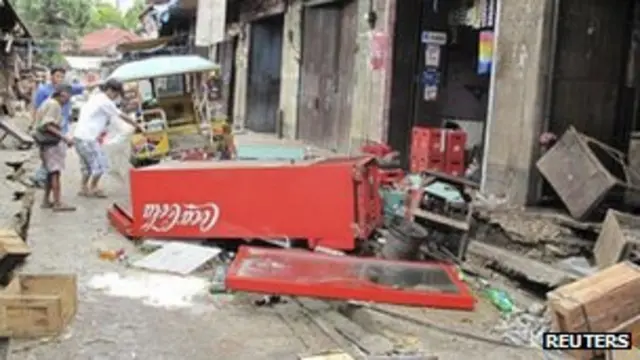 "Beberapa rumah pribadi runtuh, demikian juga gedung pengadilan dan sebagian pasar umum," tutur seorang pejabat kepolisian, Alvin Futalan kepada kantor berita AFP.