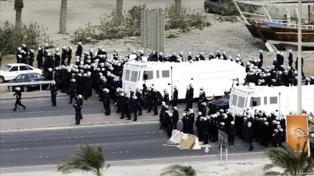 Tentara dan polisi Bahrain membubarkan paksa demonstrasi di ibukot Manama.