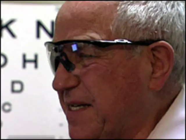 او می گوید که می تواند با استفاده از چشم مصنوعی موسوم به" آرگس ۲ " که برایش کار گذاشته اند، خطوط سفید روی آسفالت خیابان را دنبال کند یا جوراب هایش را جور کند.