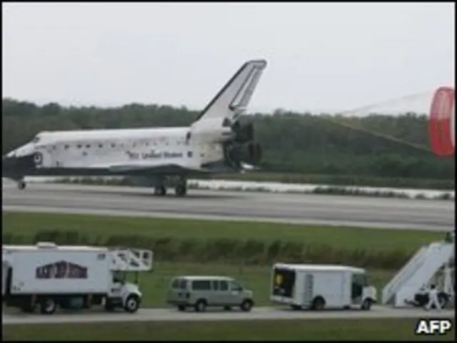 دیسکاوری ساعاتی پس از آنکه برنامه بازگشتش به دلیل نگرانی درمورد شرایط نامساعد جوی به تاخیر افتاد، در مرکز فضایی کندی در ایالت فلوریدا به زمین نشست.