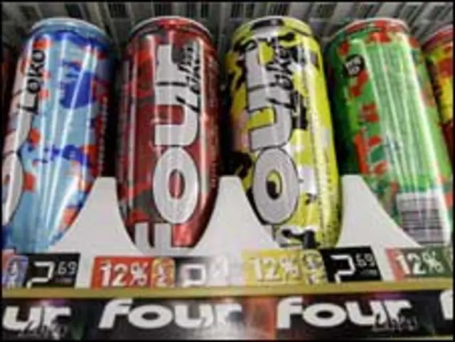 Four Loko ، یک نوشابه انرژی زا با طعم میوه است که دارای دوازده درصد الکل است.