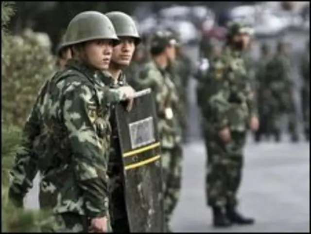 خبرنگار بی بی سی در ارومچی می گوید برای جلوگیری از ورود تظاهرکنندگان به میدان اصلی شهر، صدها مامور پلیس ضد شورش در محل استقرار یافته اند.