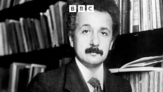 Albert Einstein develops a theory of relativity with some help from his shaving mirror.