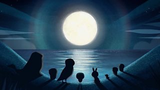 9/39Tha Oona dol chun na traghad air an oidhche. Oona makes a night-time beach visit.