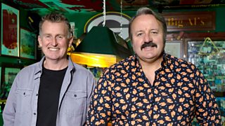 Comedian and actor Mike Bubbins welcomes former referee Nigel Owens to his bar.