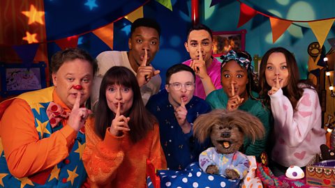 Join a host of CBeebies friends as they all try to convince Dodge that it's time for bed!