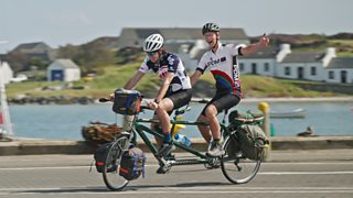 2/5Somhairle and his brother Innes have a challenging start on their first day cycling.