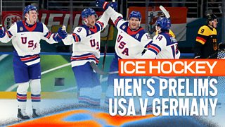 The USA defeat Denmark in physical men's ice hockey preliminary match.