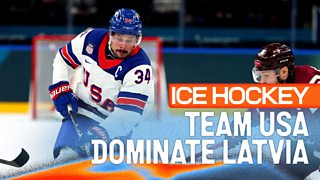 USA defeat Latvia in the men's Ice Hockey as they look to win their first gold since 1980.