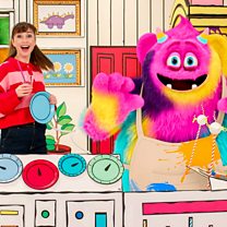 Rebecca is keen to go on a travelling adventure and invites Murphi to come. Murphi’s time machine takes them to the dinosaur age, but when it stops working, they need to get making. Firstly, they create a paper plate dinosaur, followed by some colourful water blob creatures made by the Mini Monsters. Then, Rebecca gets a call on the Magic Monster Mirror from her aunt Antarctic, who makes herself some snow-building buddies to help rescue her snowman. The Recycling Express brings some paper straws to the attic, which Murphi and Rebecca use to make a straw sailboat.