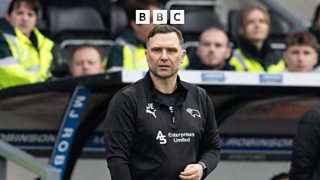 Derby County head coach John Eustace speaks following the game against Blackburn Rovers.
