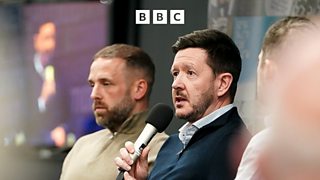 Dominic Dietrich speaks to Derby County CEO Stephen Pearce at the Fans' Forum.