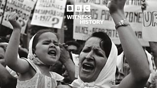 Adriana Lestido captured a mother and her daughter raising their arms in protest in 1982