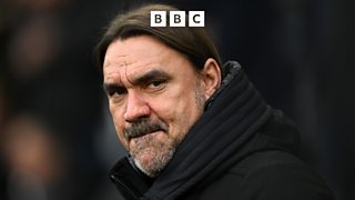 Manager Daniel Farke reacts to 4-0 loss to Arsenal.