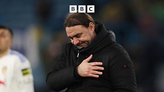 Manager Daniel Farke reacts to 4-0 loss to Arsenal.